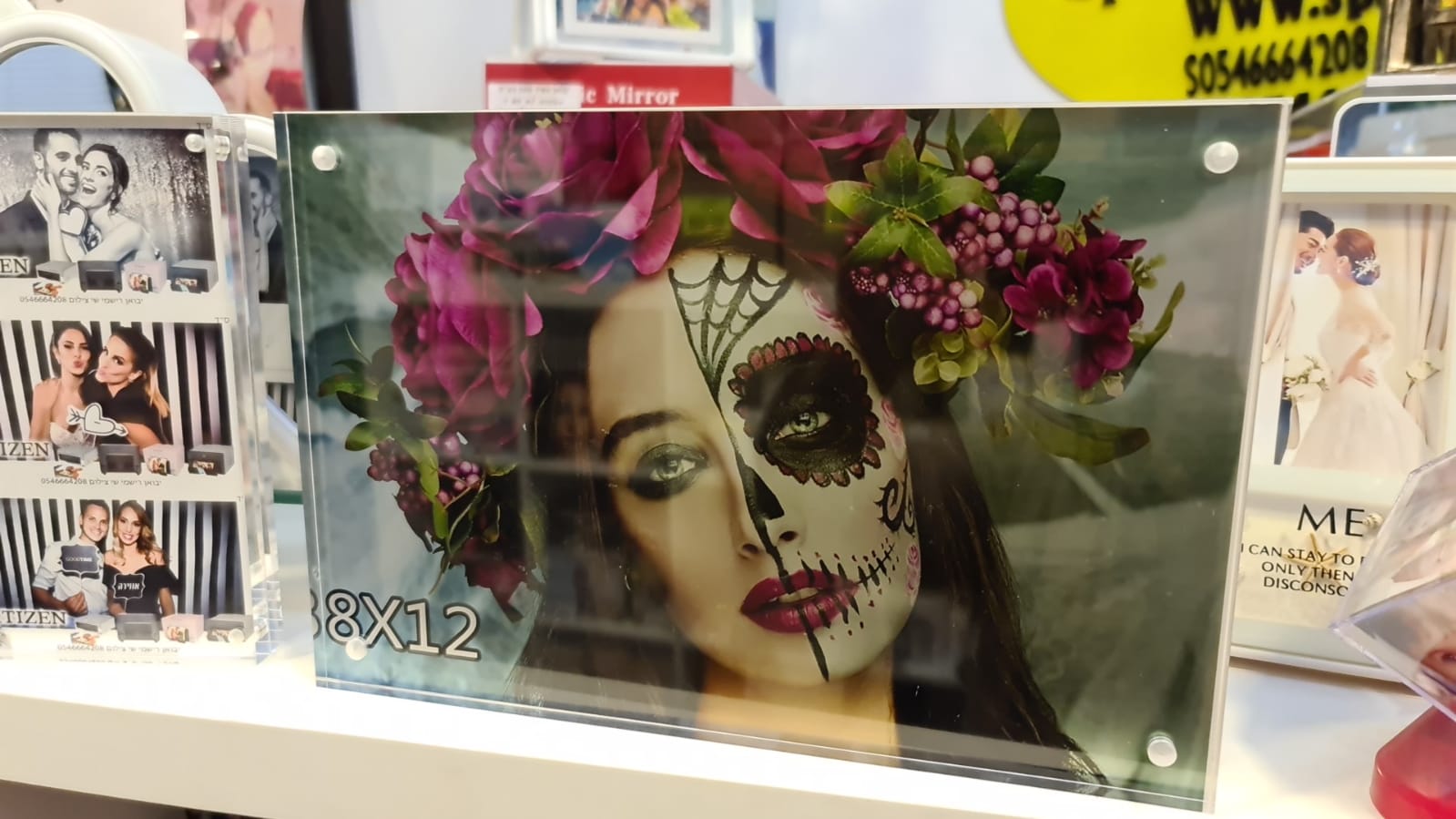 עומד על שולחן . ניתן להחליף כל הזמן תמונות לשני הצדדים